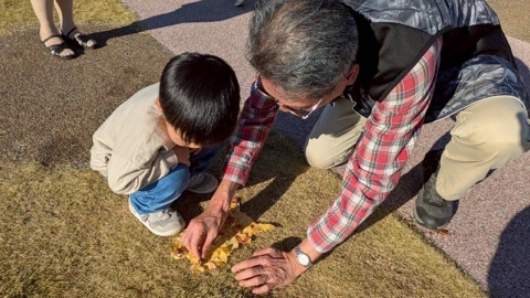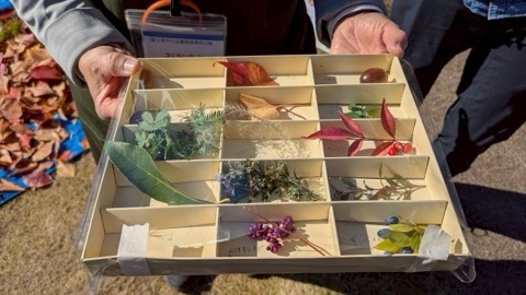 今年で3回目になる当日は、秋晴れの穏やかな日差しの中、埼玉県環境アドバイザー、埼玉県生態系保護協会富士見支部長の千種秀信氏のご指導のもとネイチャーBINGOに参加される親子さんや、ひろば内にある植物を集めて頂き、リース作り、葉っぱアートを楽しまれる親子さんでひろば内はとてもにぎやかになりました。