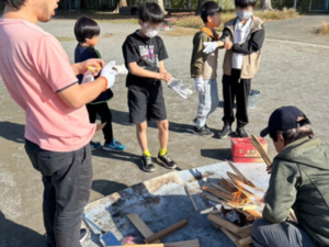 焚き火と七輪を用意するので、焼いて食べたい物を持って来るといいです。例えば、サツマイモ、ソーセージ、餅、マシュマロなど。アルミホイルや、長串があると便利です!
